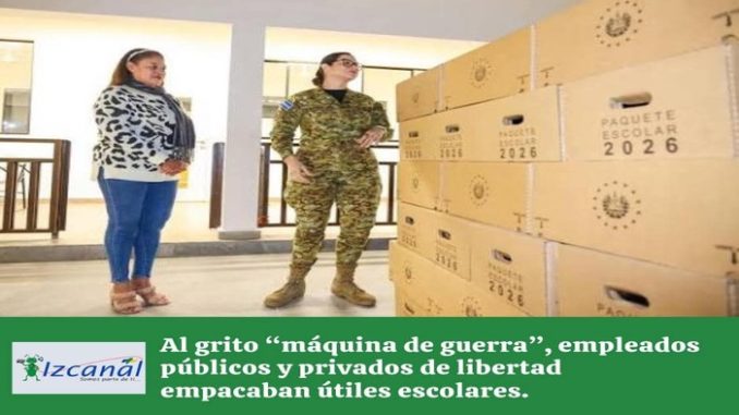 Entonando la canción “Máquina de guerra”, privados de libertad y personal administrativo del Ministerio de Educación iniciaban las jornadas de empacamiento de útiles escolares, según denuncias recibidas por Radio Izcanal.